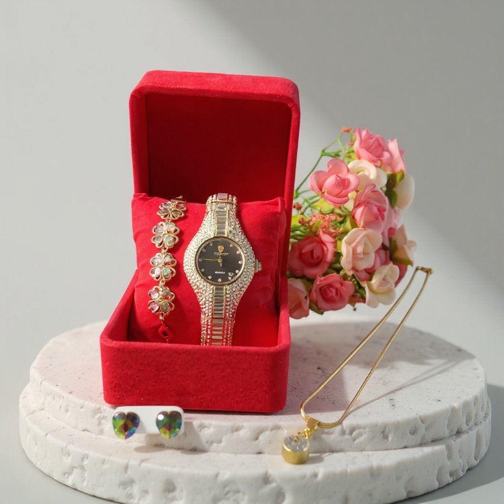 High Quality Cristal Watch, Neckless, Ear Rings, Bracelet All in One Box